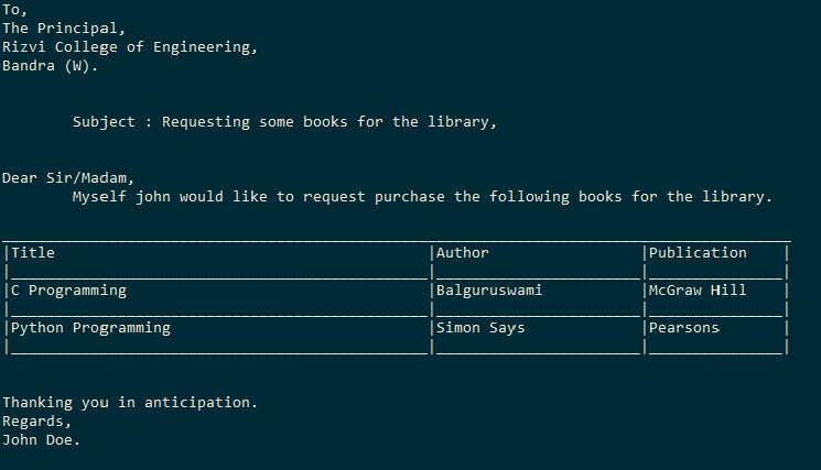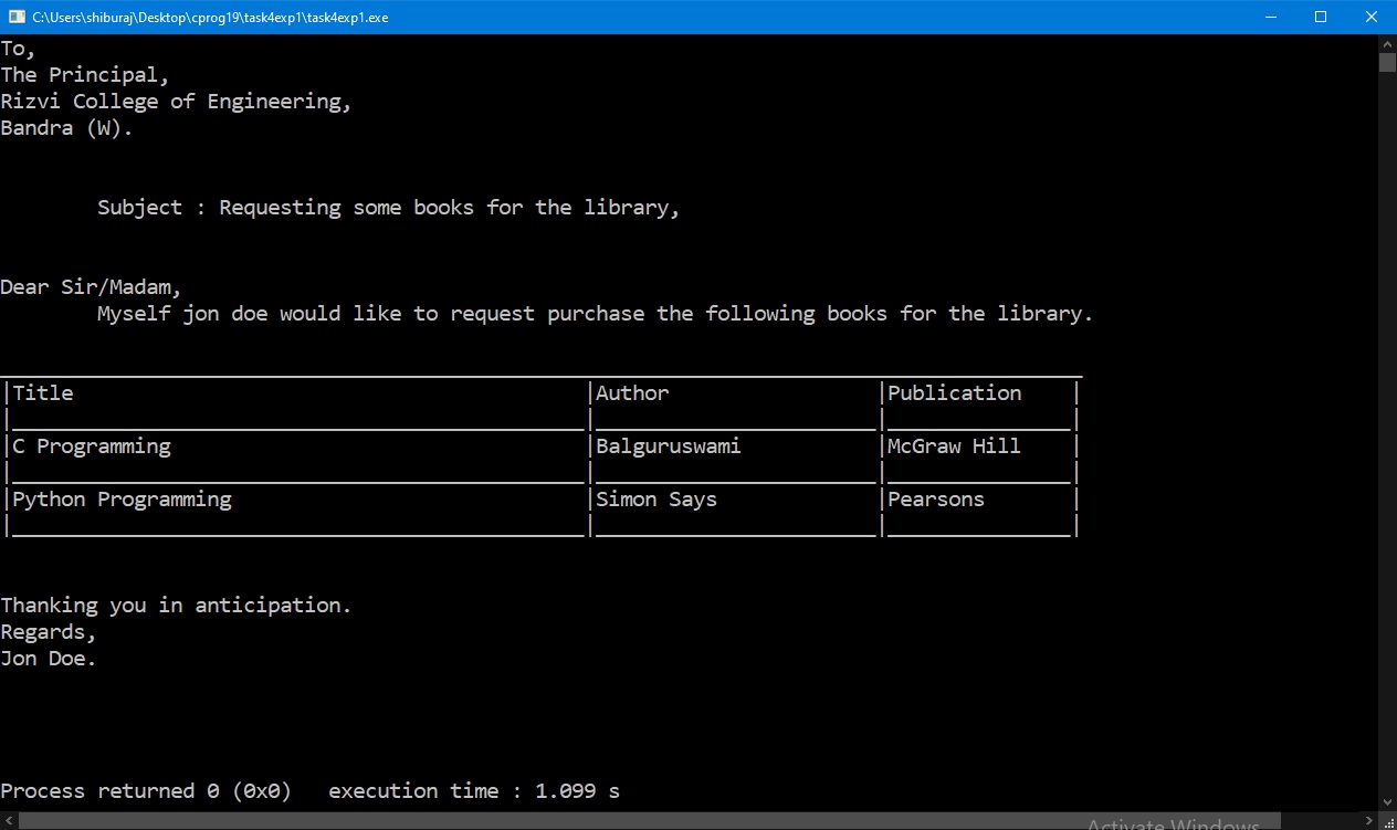 WAP to print a letter.