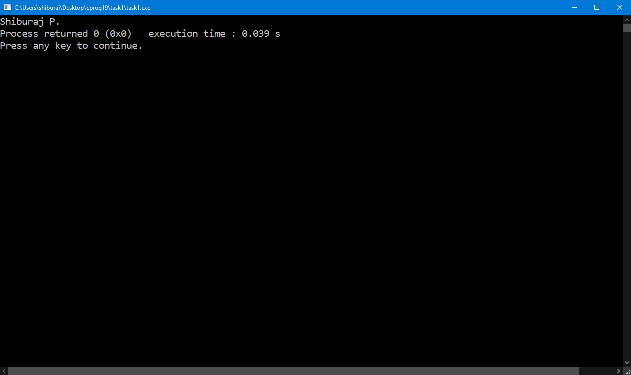 WAP to print your name on screen.