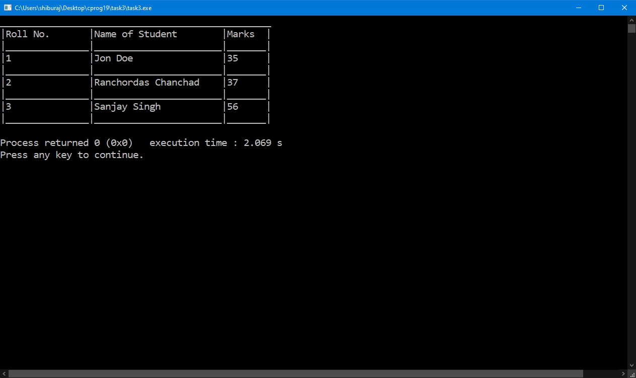 WAP to print the following table using printf.