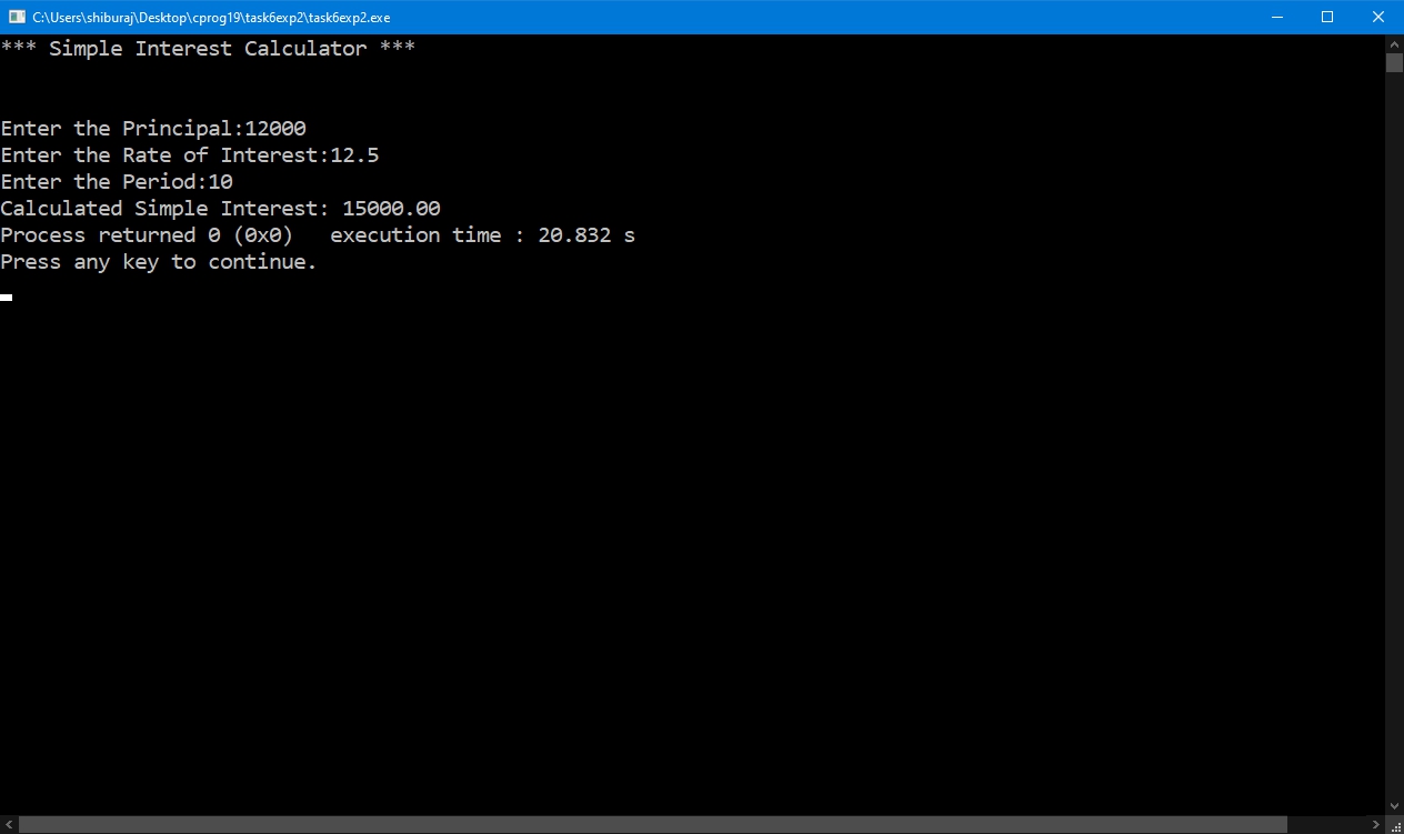 WAP to calculate the simple interest taking principal,rate of interest and no. of years as inputs from user.