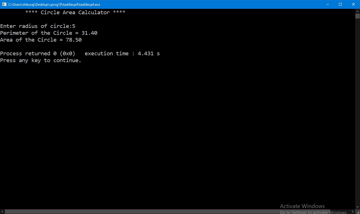 WAP to calculate perimeter and area of a circle with the help of constants.