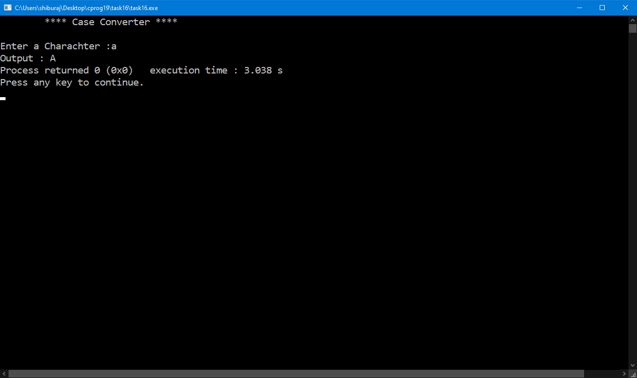 Draw a flowchart and program to convert a lower case character to uppercase and vise-versa.