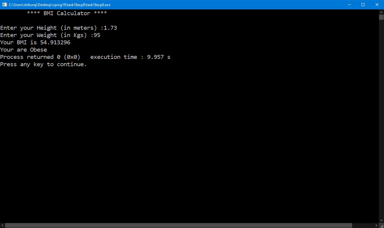 WAP to find the body mass index of the user when user enters height and weight. Also find the BMI category to which the user belongs with elseif ladder.