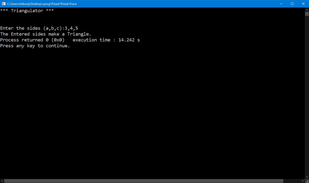 WAP to read three integer values from the keyboard and displays the output stating that they are sides of right angled triangle or not.