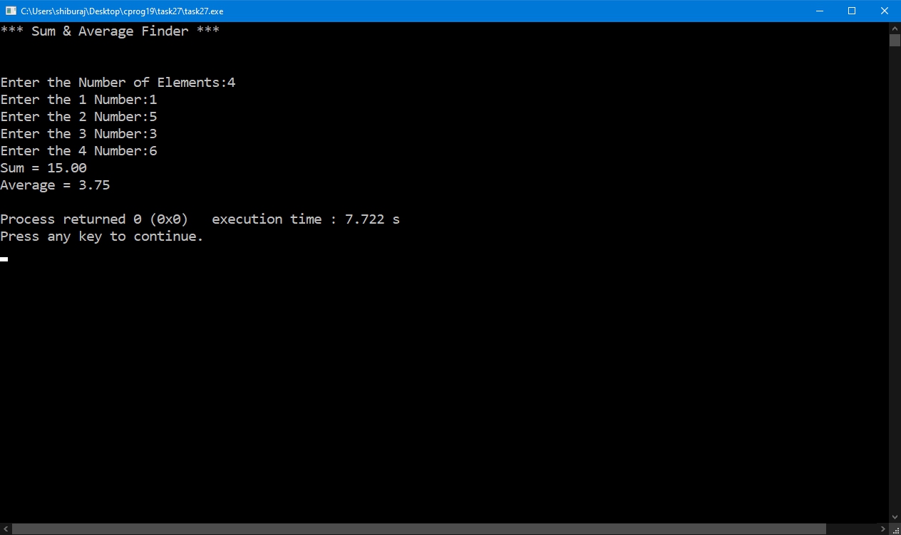 WAP to find the sum and average of the numbers entered by the user.