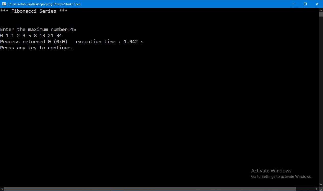 WAP to print Fibonacci Series till number entered by the user is reached.