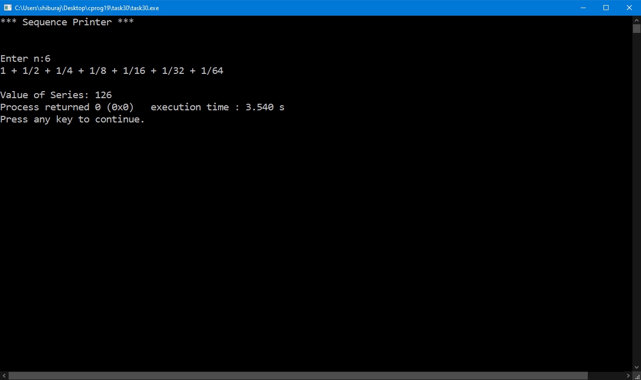 List of PatternsWAP to the following series where user enters the value for $n$. Also compute the value of the series.