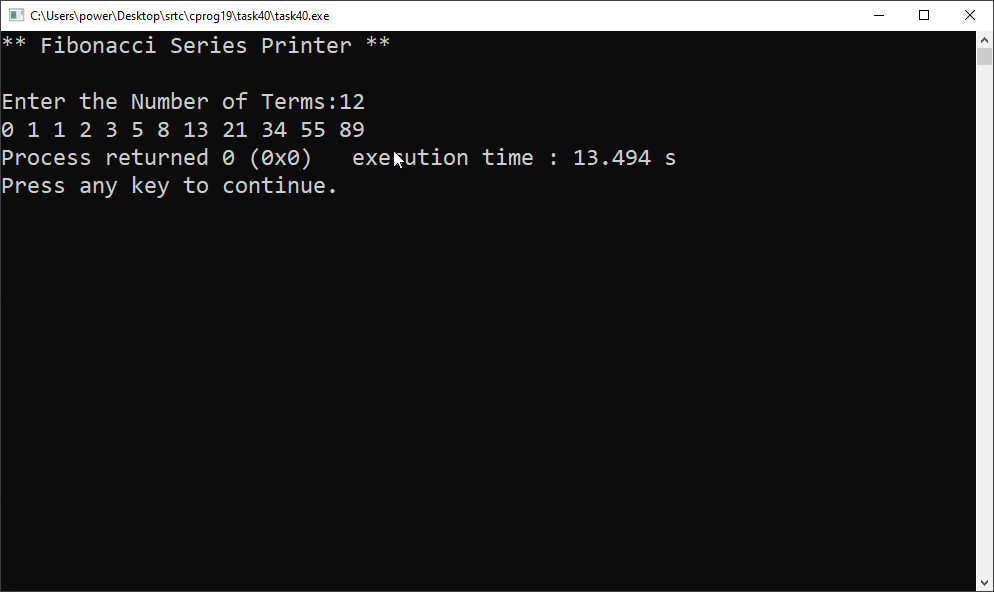 Fibonacci Series is a sequence of numbers in which each number is the sum of the two preceding ones, starting from 0 and 1.