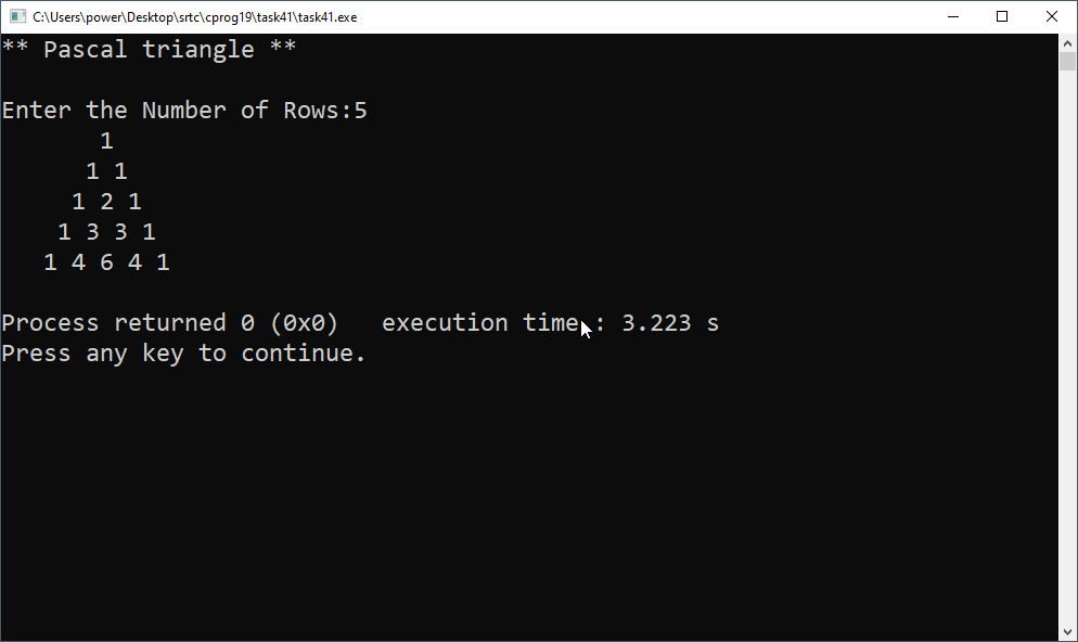Each number is the numbers directly above it added together.